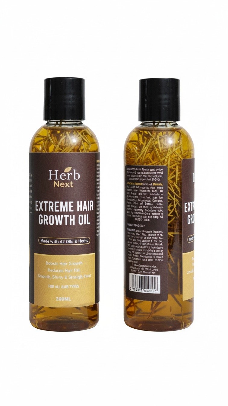 Unlock the power of nature with Herb Next Extreme Hair Growth Oil—a rich herbal blend designed to nourish the scalp, strengthen roots, and support healthier, fuller-looking hair. Crafted with 42 carefully selected oils and herbs for complete hair care.